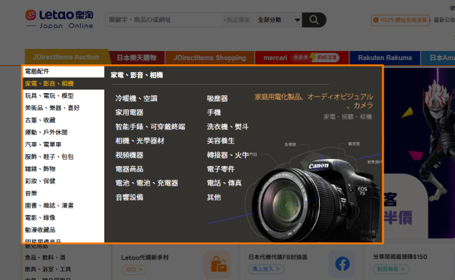 Step1.在Letao搜尋欄輸入欲購買商品之「關鍵字」、「JDirectItems Auction之商品連結」、「商品ID」等進行商品搜尋。