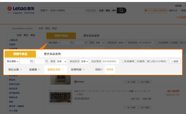 ⚡ Tips:【篩選工具】 - 可設定價格範圍、賣家、商品狀況、購買方式。