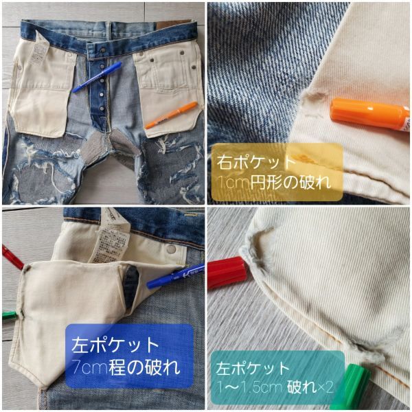Marbles/マーブルズ 色:ライトブルー 素材:コットン100 表記サイズ:L 実寸サイズ:ウエスト88×股上27×股下84×裾20.5×全長110:cm 裾:チェーンステッチ(オリジナルレングス) ※ウエストに関してはベルトループ上を直線に計測し、2倍の数値を記載しています。 【状態: B 】 デニム専用洗剤にてクリーニング済み ・内側ポケット右に直径1cmほどの破れ ・内側ポケット左に直径1~1.5cmほどの破れ×2、7cmほどの破れがございます。 ・背面両足裾に若干の薄い汚れございます。 リアルユーズドを追求した商品のため新品時より激しい加工が施されています。 汚れやポケットのタメージも加工の可能性があります。 【N】 新品未使用 【S】 新品同様/試着程度 【A】 汚れ・ダメージが無く、使用頻度が少ない美品 【B】 一般的な古着/やや使用感/目立たない汚れ 【C】 使用感あり/目立つダメージあり 【D】 補修必要 生地/部品取り用 【商品概要】 Marbles 2018年春夏モデル 日本製 即完売品 型番:MPT-S1801 50's 5PK DENIM GUILD SP VOL.1 定価¥43780(税込み) 1950年代のヴィンテージ古董商品,有可能客製化、修改、換過零件,請下標錢注意。 デニムを再現した加工デニムになります。 Marbles史上クオリティーから価格まで最高の出来栄え。 1日に1反しか製織できない旧式の力織機を使用し、熟練した職人が時間をかけてゆっくりと織り上げ製作した力作です。 ヴィンテージ古董商品,有可能客製化、修改、換過零件,請下標錢注意。 のキハダのデニムをイメージして作られた生地で、少し浅めのインディゴ色は濃い濃度の紺色が出なかった当時のインディゴ色をターゲットにしています。Marblesからは定期的にスペシャル加工デニムが発売されています。 ブランドの想いから購入しやすいよう価格を抑え発売していますが、クオリティが非常に高く、予約の時点で完売となるアイテムです。 出品商品も即完売品であり、物価が高騰した現代では同じものを作ろうとしても当時の価格では提供できません。 シルエットも良く、玄人さんも唸る1本です。 名作となり、中古市場でも見つかりにくいアイテムになりますのでお探しの方にぜひ。