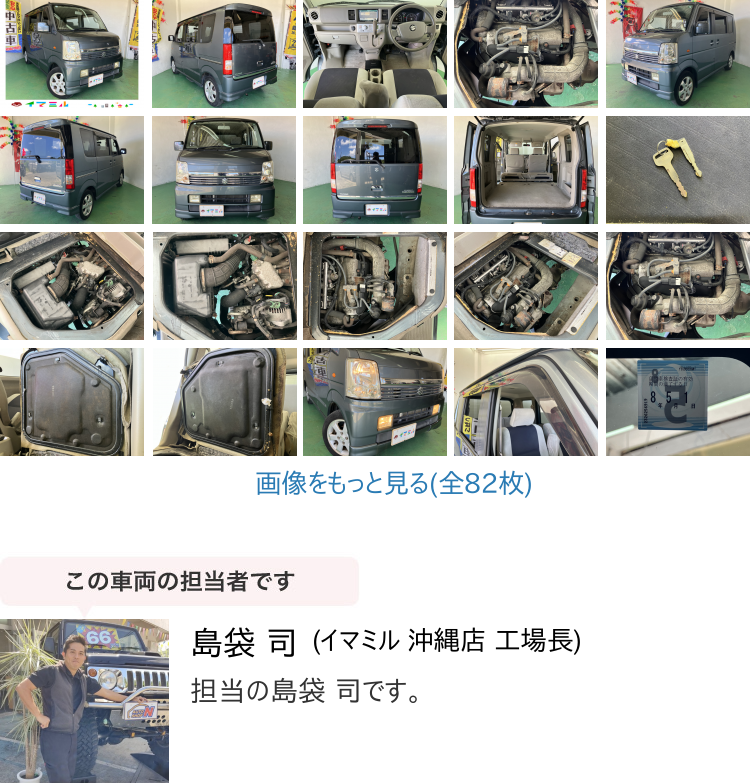 商品名稱 : | 【諸費用コミ】:沖縄県発 現状販売 業販 平成18年 スズキ エブリイワゴン PZターボスペシャル 灰 122,772km 車検R8年5/1 |