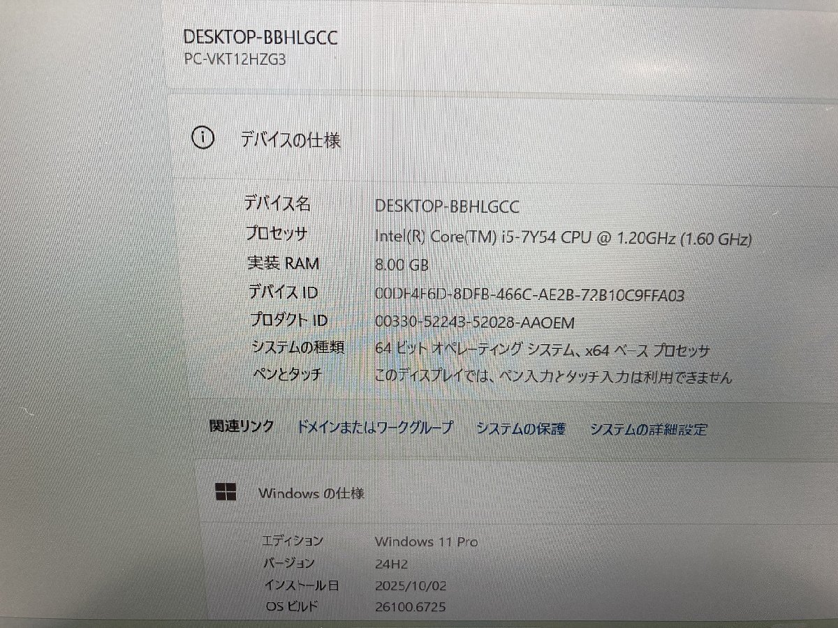 Intel(R) Core(TM) i5-7Y54 CPU @ 1.20GHz( 1.60GHz)