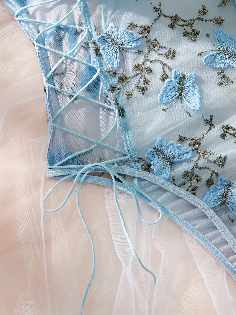 商品名稱 : | ◆ ラグジュアリー蝶刺繍&レース テディ(ボディースーツ) サイズ3L ブラ部 C85-C90 ブルー系◆新品♪大きいサイズ 送料230円(匿名)◆ |