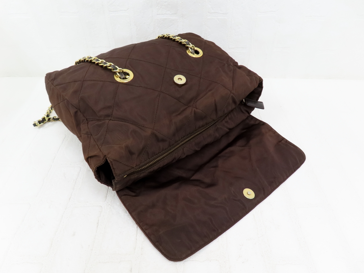 PRADA プラダ キルティングナイロン サフィアーノ レザー チェーン ショルダーバッグ サイズ 縦25cm / 横31cm / マチ6.5cm 色:茶 ── 商品ランクについて ── N:新品または未使用のもの S:保管・展示中になんらかのキズが付いた未使用品 A:新品同様に状態が良いもの AB:目立たない程度のキズ・汚れがあり、きれいな状態 B:ややキズ・汚れ・使用感などがあるが概ね良い状態 C:キズ・汚れ・使用感などがある状態 D:キズ・汚れ・使用感などが多くあり状態が悪いもの ■ 商品ランク ■ AB 少しすれ、小キズ、うすいよごれ、少し変色がございますが、大きな傷みもなくきれいな状態です。 なるべく実物に近づけるよう気を付けていますが、 お使いのモニターにより多少の違いがでることはご容赦下さい。 - 発送方法 - 宅配便 / 全国一律 元払い1500円 / 北海道・九州7県 1700円 ※沖縄、及び大型サイズは着払いでの発送となります。 安心のヤマト運輸で発送致します。 お届け日数は発送手続きのご連絡後、最短で翌日のお届けです。 例:月曜日(手続き→発送&お客様へご連絡)→火曜日(着荷) 北海道・沖縄・九州・離島、及び一部地域は最短日配送の対象外となりますので、ご容赦くださいませ。 - 同梱について - 同梱発送を希望される場合は、取引ナビより”まとめて購入手続き”を選択してください。 ※取引メッセージで同梱依頼を頂いたものは対応致しかねますのでご容赦くださいませ。 1両日中に落札されたものであれば、基本的に同梱発送が可能です。 1点に付き同梱手数料を300円頂戴致します。 同梱された商品は送料無料となり、送料のご請求は1点分となります。 送料は同梱可能な分量である限り何点でも1点分です。 (一部商品・サイズの大きな商品は同梱出来ない事もございます。) -同梱時のお支払いについて- クレジットカード決済の場合、送料変更時に再オーソリが必要となる場合がございます。 再オーソリ不可となった場合はお支払い方法を銀行振込に変更させて頂きます。 コンビニ払いの場合は当店が送料変更後にお支払い頂きますようお願い致します。 変更前にお支払いされた場合は送料の返金は致しかねますので、ご容赦くださいませ。 下記の時間帯でご指定いただけます。 購入手続き時に時間指定が可能となりますので、そちらで手続きをお願い致します。 ※取引メッセージで時間指定の依頼を頂いたものは対応致しかねますのご容赦くださいませ。 午前中 / 14時~16時 / 16時~18時 / 18時~20時 / 19時~21時 運送会社の都合および、悪天候によりご希望通りの日程でお届けできない場合があります。 恐れ入りますがご了承くださいませ。その他ご要望は落札後に取引ナビ→購入手続き画面のストアへの要望欄にお願い致します。 ≪ブランド正規品保障≫ 出品中の商品は全て正規品(本物)でございます。 万が一、正規品でない物がございましたら、返品・返金に対応させて頂きますので ご安心してお買い求め下さい。 返品のご連絡は商品到着後3日以内でお願い致します。 【お支払い金額】 ・落札価格 + 消費税10% + 送料 となります。 【注意事項】 ・最近いたずら入札や、ご連絡いただいてもご入金が無いという トラブルが多発しております。営業に支障をきたす為、 ご落札後48時間以内需在賣家要求時間完成匯款 のご連絡、ご落札後3日以内のご入金が 出来る方のご入札をお願い致します。 (例:9月1日23時終了の場合 → 9月4日までのご入金 ※5日AMに入金確認) ・ご落札後3日以内のご入金が確認できなかった場合、 お取引をキャンセルさせて頂きますのでご了承下さい。 この処理を致しますと、ご落札者様に対しシステム上自動的に 「非常に悪い」との評価がされますのでご了承下さい。 ・サイズの関係で同梱できる商品とできない商品が ございますので同梱をご希望される方は、事前にお問い合わせ下さい。 ・できる限り商品に近い画像を載せておりますが、お使いのパソコンにより 商品の色味や程度に差が生じる場合がございます。 ・当店にて商品の検品を入念にしておりますが、見落しがある場合がございます。 また、個人の価値観の相違によるクレームもお受けいたしかねますので、 神経質な方はご入札をご遠慮ください。 ・商品に対し、ご不明な点等ございましたらご入札前に、 質問欄よりご質問下さい。営業時間内に随時回答させて頂きます。 ・営業時間外(土日・祝日含む)は、ご質問への回答及び発送業務等を お休みさせて頂いております。翌営業日より順番に対応して 参りますので、それまでお待ち頂きますようお願い致します。 ・著しく悪い評価 をお持ちの場合、ご入札はご遠慮願います。 ご入札を確認した時点で、ご入札の取消処理をさせて頂くことが ございますので、ご注意願います。 ・ご入札の取消をご希望の場合は、オークション終了前の営業時間内に ご質問欄にてご相談下さい。 ・評価ご不要の方は、その旨をオーダーフォームにて ご連絡下さい。商品発送時に評価入力をさせて頂