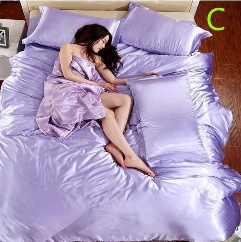 LDL4140# サテンシルク寝具セット、ホームテキスタイルキングサイズベッドセット、寝具、布団カバーフラットシート枕