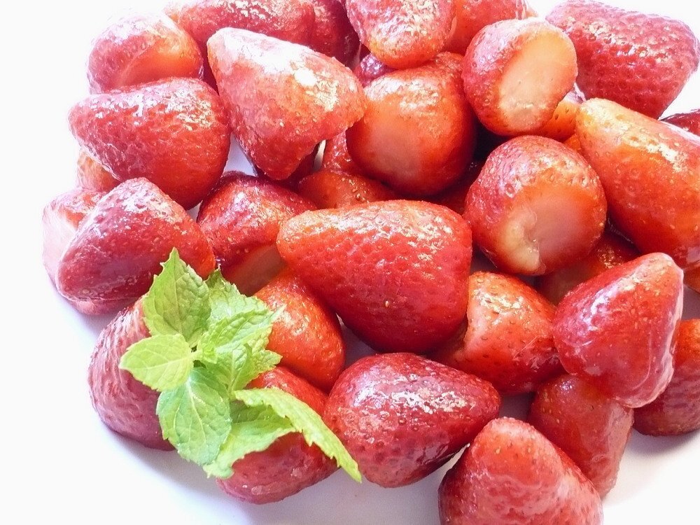 新鮮な完熟苺をヘタを取り丸ごと急速冷凍。