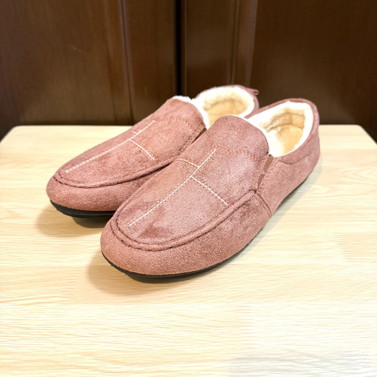 スリッポン ボア メンズ スニーカー カジュアルシューズ ファーモカシン ローファー 裏起毛 ブラウン 26.0