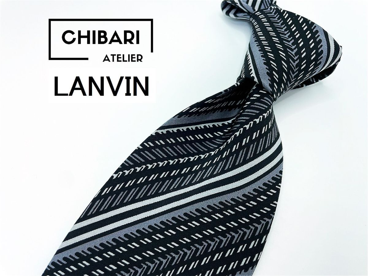 【新古品】LANVIN ランバン レジメンタル柄 ネクタイ 3本以上 送料無料 メンズ ブラック系 0902058