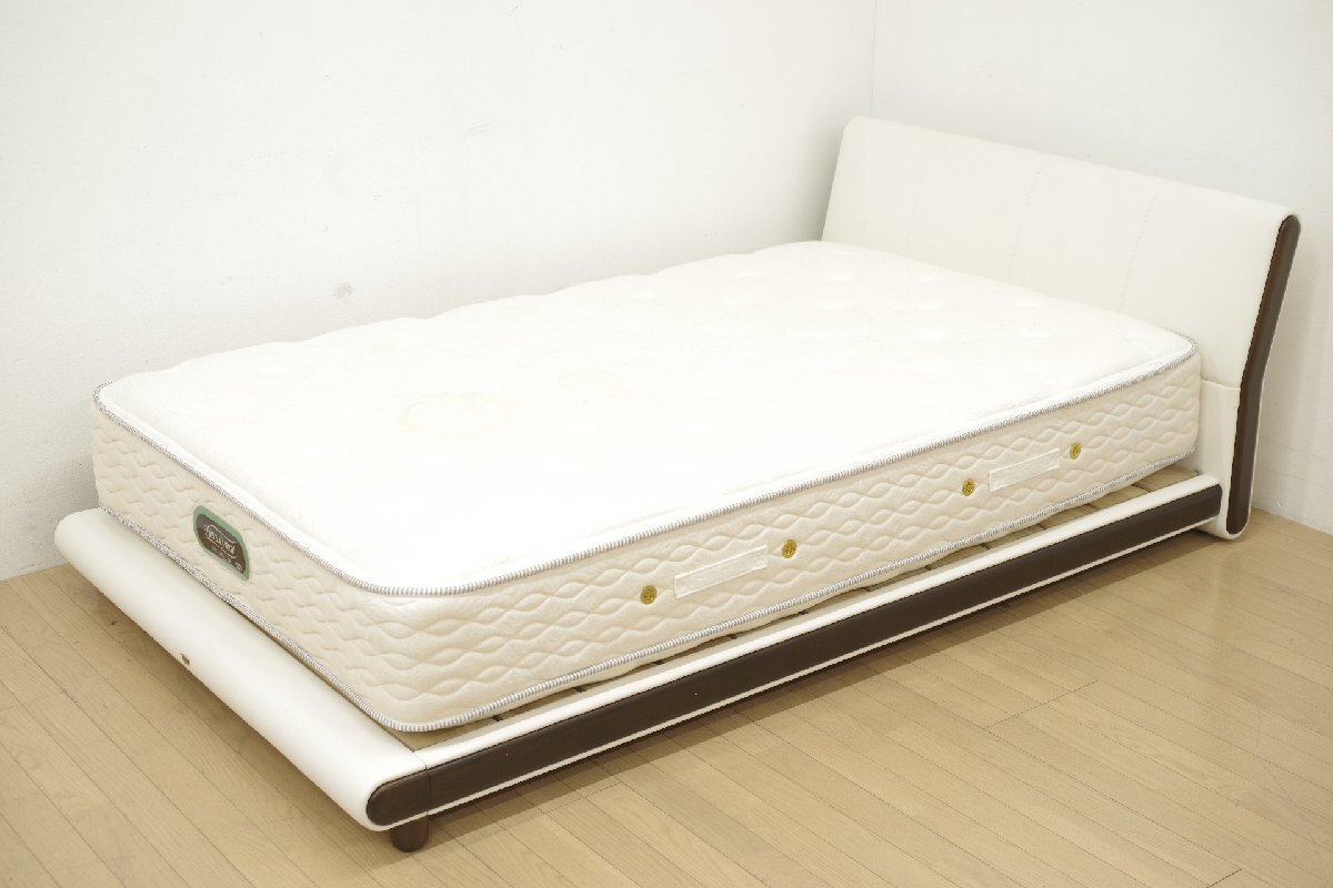 【商品紹介】 シモンズよりベッドフレーム マットレス 2点セットのご紹介です。 やわらかなラインのヘッドボードが印象的なロータイプのベッドフレーム。 ヘッドボードのサイドは、丸みのあるウッド仕様でスタイリッシュな仕上げになっております。 マットレスの“ビューティレスト プレミアム”シリーズは、コイルスプリングの高さ、スプリングの線径、キルティングパターンなど、マットレスの寝心地に関わる要素や素材を丁寧に掛け合わせてつくられた、マットレスシリーズです。 個々のコイルが独立した“点”となって体圧を分散させ、身体を身体をしっかり支える理想的な弾性を実現しています。 是非、この機会にご検討ください。 ※破損防止の為、ベッドフレームを解体した状態で発送させていただきます。 運送会社による組み立てはオプション扱いとなり、別途料金が発生しますので、ご注意ください。 【コンディション】 中古・使用品です。 ・ベッドフレームに微細な擦れ傷や目立たない程度の落としきれない汚れがございます。 ・マットレスに落としきれないシミ汚れがございます。 全体的に目立つ大きなダメージはなく、まだまだご愛用いただける状態です。 ※清掃、撮影時に目立つ箇所を抜粋して写真掲載しておりますが、同等の傷などがあるものとご了承ください。尚、商品ページの追加写真にて状態をご確認の上、ご検討いただけますよう、お願いいたします。 この他にも商品を多数出品しておりますので、こちらから御覧下さい。 | ||