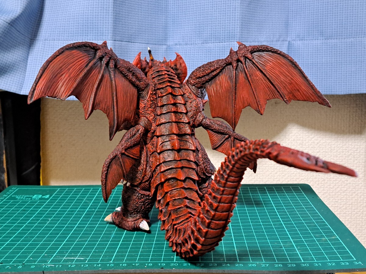 デストロイア完全体が完成致しました。これで、7体目です。何体作んねん!笑 デアゴスティーニ 東宝怪獣コレクションのデストロイアを頭部のみ、1番くじの頭部マグネット デストロイアに差し換え改造、リペイント完成品です。 今までの6体と比べて、今回は全体的に赤いイメージの色にしています。 高さは約17cmあります。改造リペイント後に全体的につや消しスプレーを拭いて、両眼、頭部の角にUVレジンを入れてうるうる、テカテカにしました。 頭部、胴体以外は、元のデアゴスティーニさんのデストロイアのキットです。なので、バラバラに出来ます。グッと入れると崩れたりしませんが、気になる方はゲットされましたら、瞬間接着剤で接着してください。ドライヤーで少し熱っすると、はめやすいかと思います。 なお、発送はパーツを全て外してプチプチに包み、ダンボールに入れて発送させて頂きます。 顔以外のデアゴスティーニさんのデストロイアの体型は、尻尾もかなり長めで、まさにデストロイアです。 モンスターアーツ デスゴジと並べて対決させるイメージ画像を入れています。 ゲットされた方は、モンアツデスゴジの隣に並べてください。なお、モンアツデスゴジは付きません。 私もデストロイアが大好きです。デストロイアが大好きな方に落札して欲しいです。ご入札をお待ちしています。 どうぞよろしくお願い致します。 >