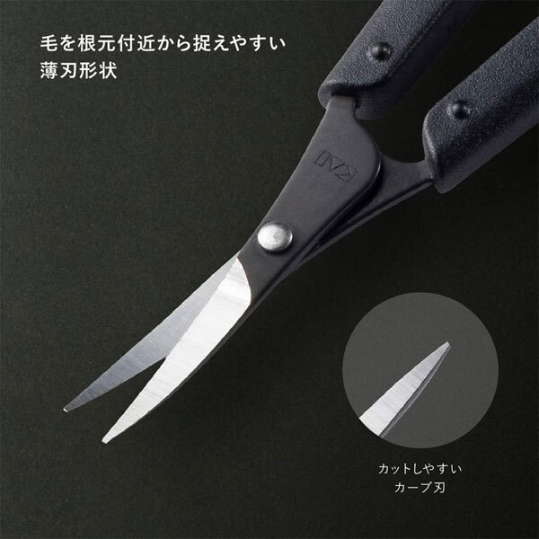 切りたい毛を狙いやすいカーブ刃がポイント。