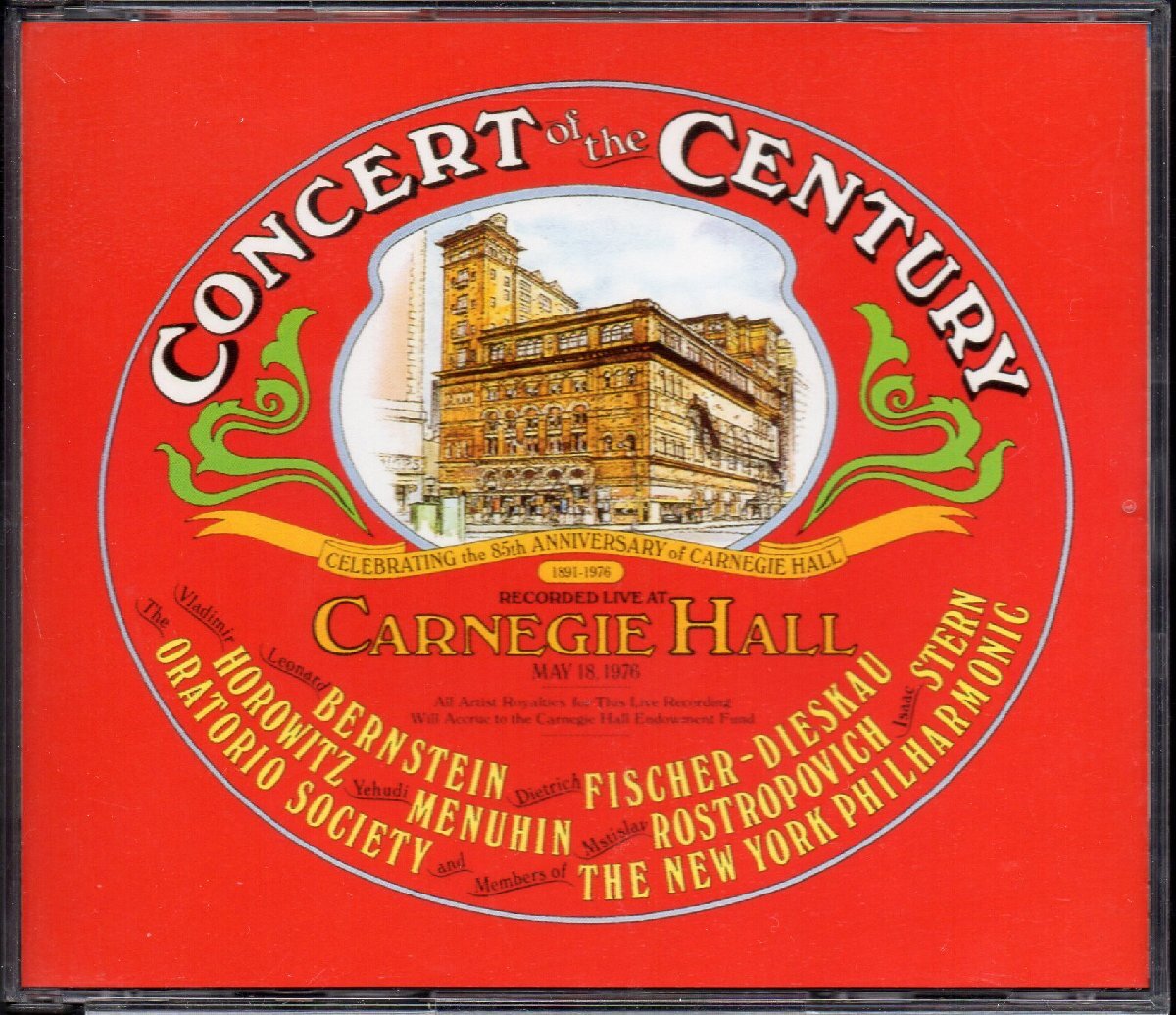 -カーネギー・ホール85周年を記念しての豪華ガラコンサート。特にホロヴィッツとロストロポーヴィチ、あるいは F- ディースカウとの共演が貴重。おそらく綿密なリハーサルはされなかったのではないでしょうか。それだけにそれぞれの個性を発揮した、奔放な表現が面白いところです。特にホロヴィッツのピアノ。-[7]はオケと合唱、そして出演者が皆 歌で参加しています。