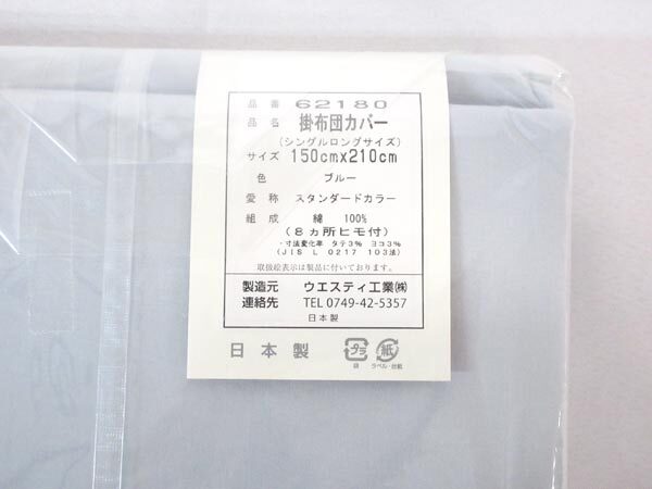 内 容 | ■ウエスティ スタンダードカラー 掛布団カバー シングルロング(62180) ■サイズ:150×210cm ■組成:綿100% ■カラー:ブルー ■仕様:8か所ひも付 ■日本製 天然繊維にこだわった掛け布団カバーです。 綿素材なので吸水性に優れ、むれにくく爽やかな使用感です。 8箇所にひもが付いているので、中の布団がずれにくくなっています。 ※パッケージのラベルが異なる場合があります |