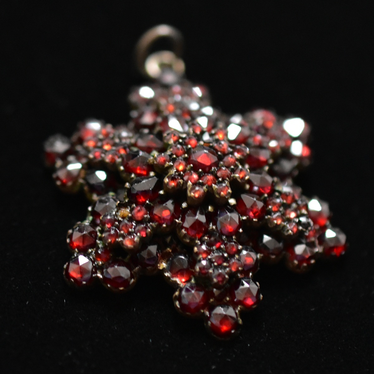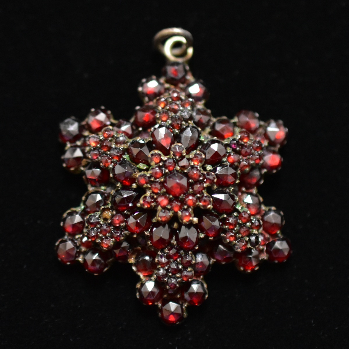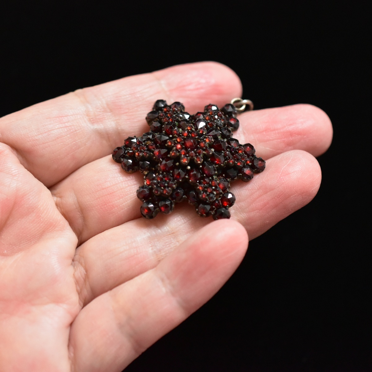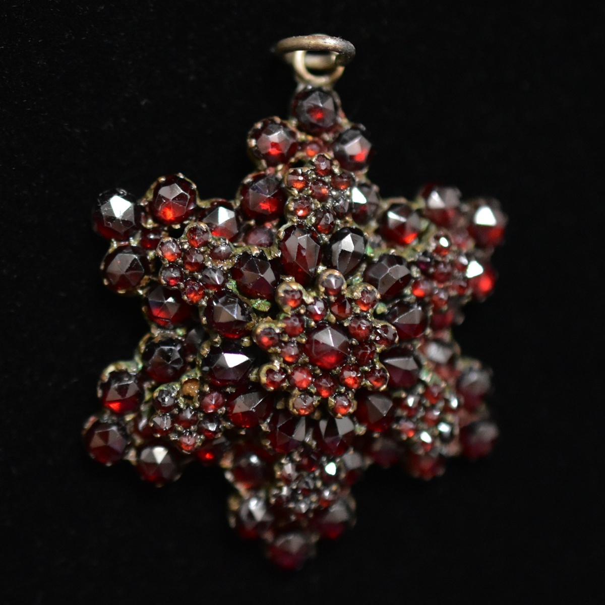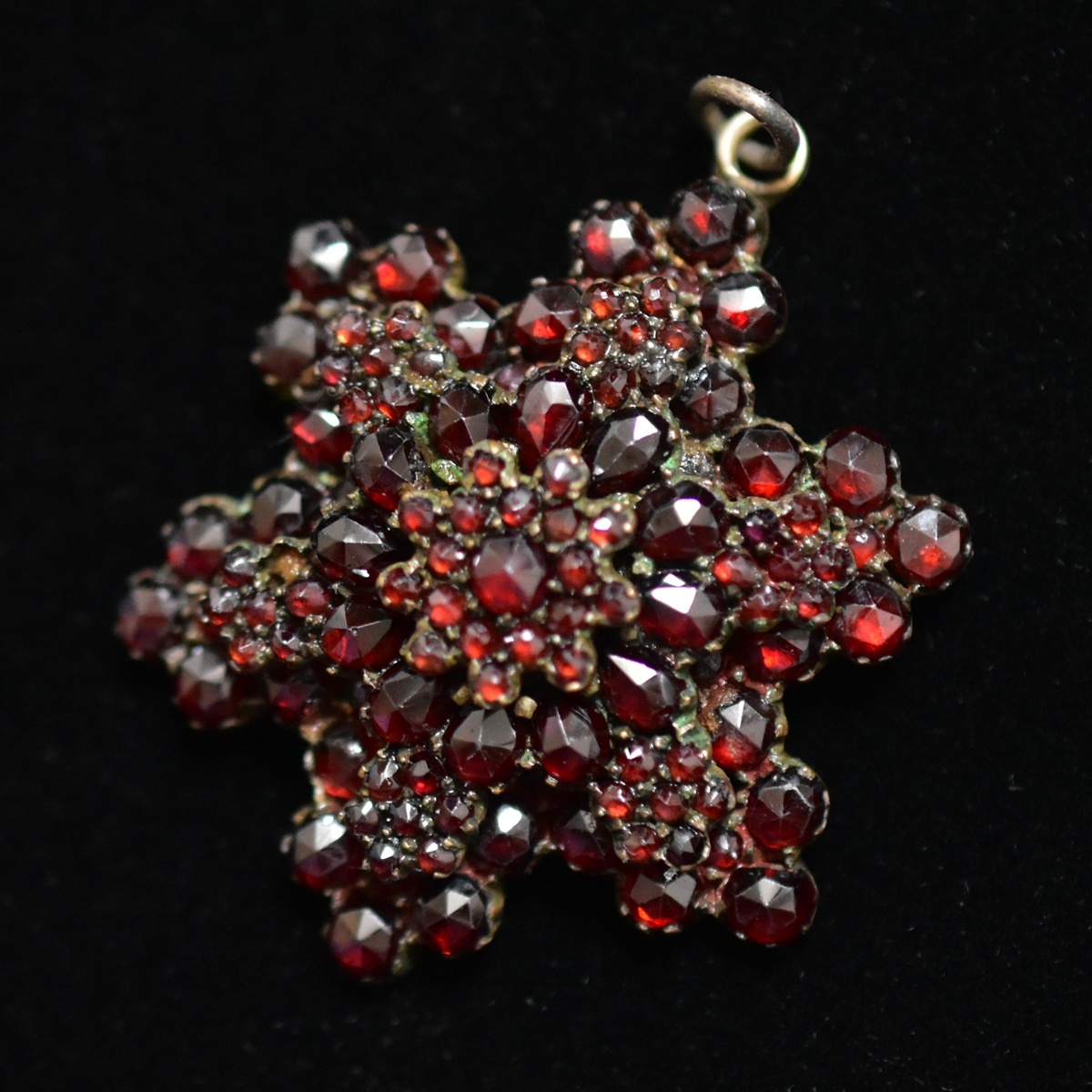 商品について 時代■19世紀ヴィクトリア時代 使用している素材■シルバーギルド、ガーネット 商品詳細■ 中世よりガーネットの中には炎が眠っているといわれ、 身を守る力があるとされています。 19世紀、ボヘミアで良質のガーネットが産出され、 さらに英国ヴィクトリア女王がとても好んだ事から ショーウインドウがガーネットで埋め尽くされる程の人気が出ました。 こちらのお品は19世紀ヴィクトリア時代、ボヘミアンガーネット全盛のころに 大小様々なローズカットガーネットを集め、 ペンダントトップ/チャームにした贅沢なお品です。 ヴィクトリア時代に良く見られるクローズドセッティングのお品で 光を当てると真紅に輝くガーネットははっとする程美しいです。 ガーネットはすべて本物のガーネットを使用しています。 小さなものに少しロストがあるようですがそれほど目立ちません。 ヴィクトリア時代に好まれたガーネットを存分にお楽しみ頂けるお品です。 室内灯でこれだけ赤いのがわかります。 ボヘミアンガーネットの質も最高のもので 太陽の下だともっと赤くなるでしょう。 古いアンティーク古董商品,有可能客製化、修改、換過零件,請下標錢注意。 品であることを保証致します。 出品は1枚目の画像のうちタイトルに記載された商品のみです。 撮影用のBOX等、背景のモールなどは付属致しません。 古いものなので見落としなどあるかもしれません。 画像を良くご確認ください。 また、経年による小傷やお色の変化などは アンティーク古董商品,有可能客製化、修改、換過零件,請下標錢注意。 品としてご理解ください。 ノークレームノーリターン、 入札と同時に商品説明を すべてご了承頂いたものとさせて頂きます。 サイズ■金具含め4.68cm×3.31cm 重さ8.4g 残念ながらトラブルがあり、 今後は評価が新規の方、悪いが多い方からご入札頂いた場合、削除致します。 評価が新規の方でご入札予定の方は事前に質問欄でお声かけください。 よろしくお願い致します。