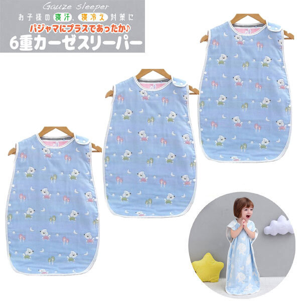 (250819)キッズ 寝冷え防止 6重ガーゼスリーパー 犬/ブルー L(716845) 3点 | |