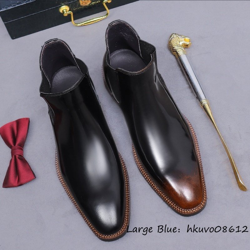 極美品■メンズ チェルシーブーツ 漆皮 光沢 本革 マーティンブーツ 高級牛革 レザーブーツ ハイカット 英国風 皮靴 新品 ブラウン 26.5cm