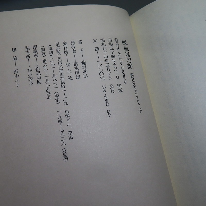 種村季弘:【吸血鬼幻想】*種村季弘のラビリントス/*昭和54年:<初版・帯>