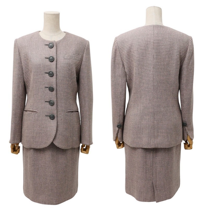 GR9966=クリスチャンディオール ヴィンテージ*セットアップスーツ ツイード*ウールシルク*ジャケット+タイトスカート 総柄 サイズ9 | |||