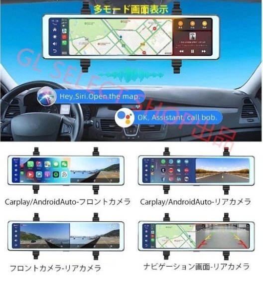 ワイヤレスCarplay/AndroidAuto対応12インチIPS液晶画面 ミラー型ドライブレコーダー ポータブルナビカーナビ機能 2カメラ録画 音楽対応