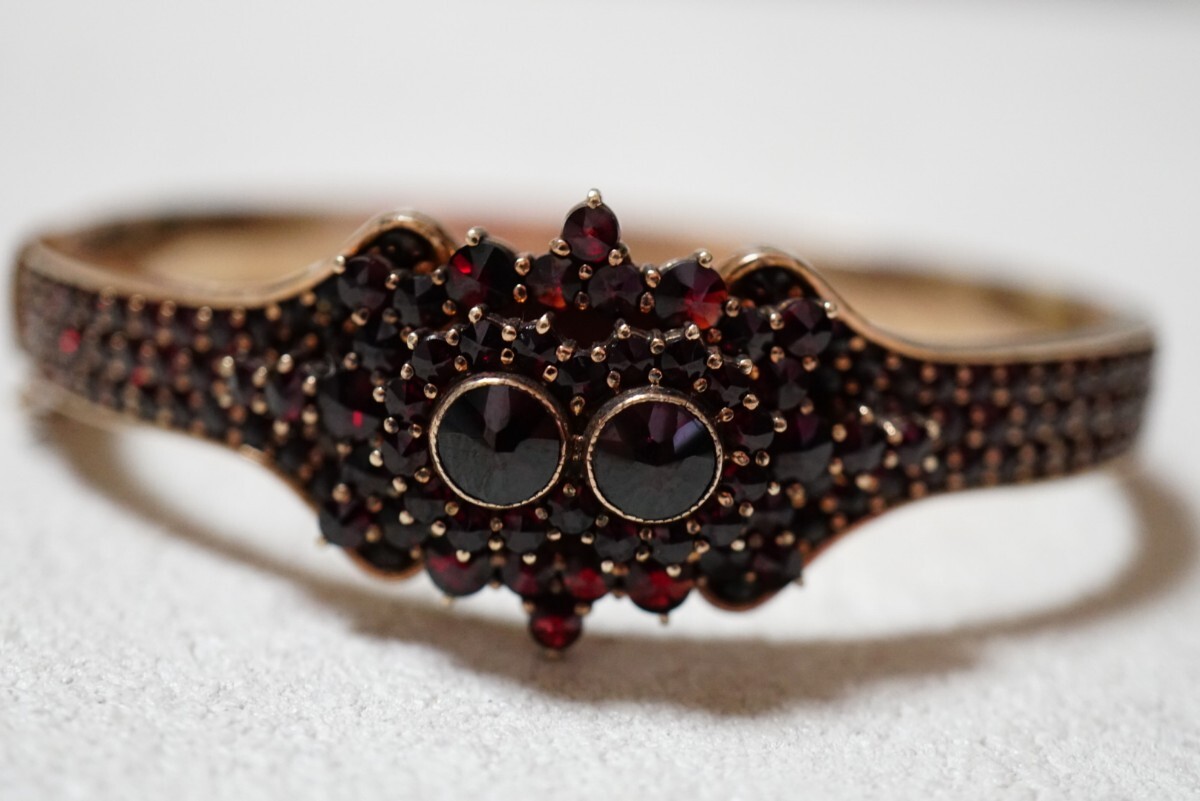 x15 英国 ボヘミアンガーネット バングル 腕輪 ブレスレット ヴィンテージ アクセサリー SILVER 宝石 カラーストーン イギリス 装飾品