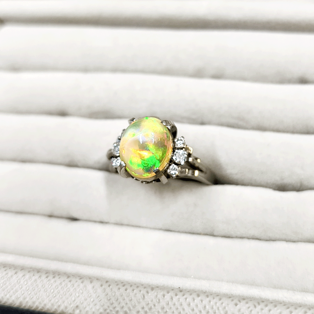 商品名 | Pt900 オパールリング ダイヤ付 |