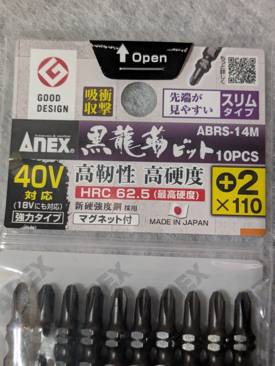 商品名稱 : | ANEX アネックス ABRS14M 黒龍靭ビット 両頭スリムタイプ 10本入 +2X110 40Vインパクト対応(18Vにも対応)強力タイプ 未開封品 |