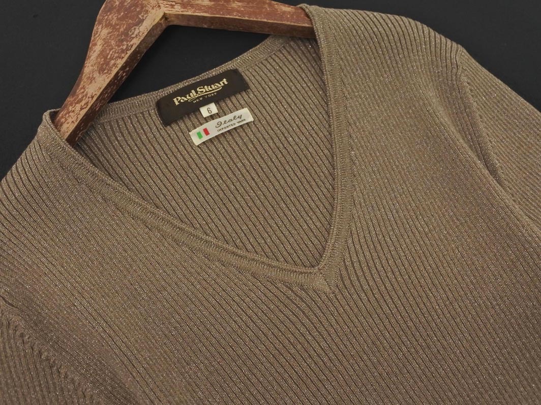 商品名稱 : | ネコポスOK PAUL STUART ポールスチュアート Vネック ラメ リブ ニット セーター size6/ベージュ ■◇ ☆ fga8 レディース |