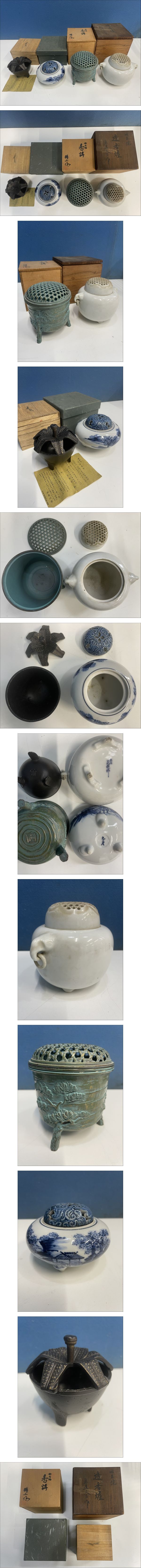 10-B8/1-80 香炉 まとめて 4点セット 高岡銅器 鋳銅製 百合香炉 九谷焼 他 箱付き 茶道具 香道具 置物 | |||