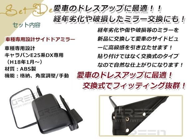 商品名稱 : | キャラバン E25系 DX ドアミラー 純正タイプ 交換式 左右セット |