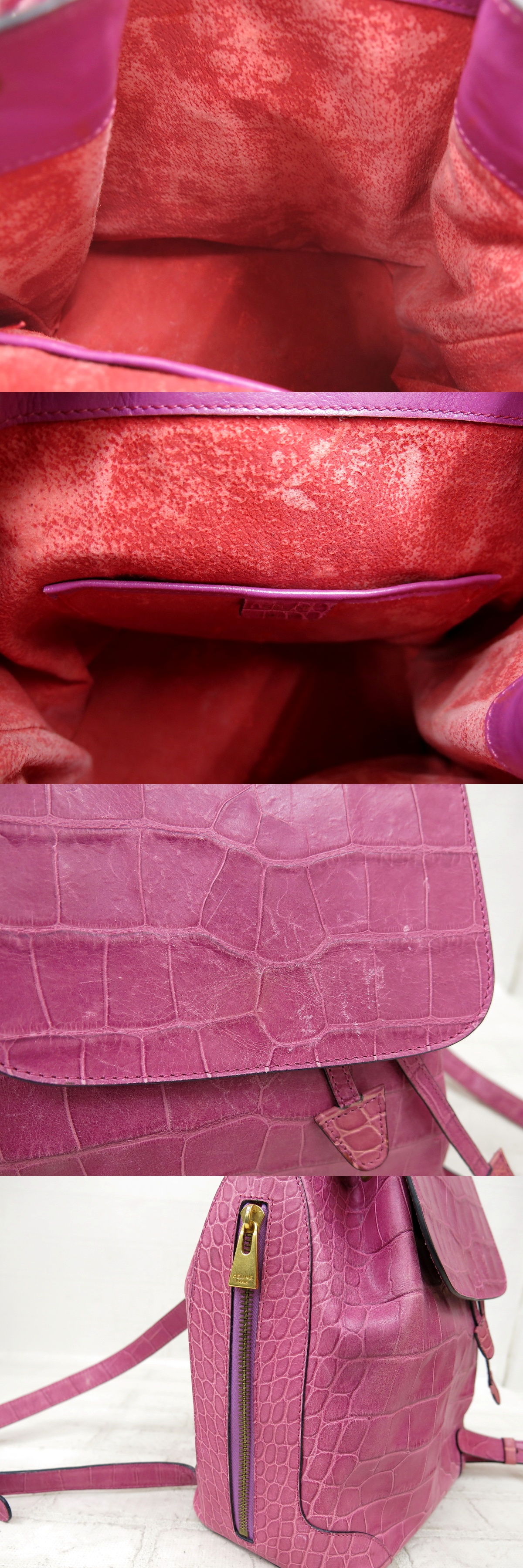 CELINE セリーヌ クロコ型押し カーフ レザー リュックサック バックパック サイズ 縦25cm / 横22cm / マチ13cm 色:ピンク 付属品:保存袋 ── 商品ランクについて ── N:新品または未使用のもの S:保管・展示中になんらかのキズが付いた未使用品 A:新品同様に状態が良いもの AB:目立たない程度のキズ・汚れがあり、きれいな状態 B:ややキズ・汚れ・使用感などがあるが概ね良い状態 C:キズ・汚れ・使用感などがある状態 D:キズ・汚れ・使用感などが多くあり状態が悪いもの ■ 商品ランク ■ B すれ、若干のキズ、若干のよごれ、中に剥がれがございますが、表面に大きな傷みのないお品です。 なるべく実物に近づけるよう気を付けていますが、 お使いのモニターにより多少の違いがでることはご容赦下さい。 - 発送方法 - 宅配便 / 全国一律 元払い1500円 / 北海道・九州7県 1700円 ※沖縄、及び大型サイズは着払いでの発送となります。 安心のヤマト運輸で発送致します。 お届け日数は発送手続きのご連絡後、最短で翌日のお届けです。 例:月曜日(手続き→発送&お客様へご連絡)→火曜日(着荷) 北海道・沖縄・九州・離島、及び一部地域は最短日配送の対象外となりますので、ご容赦くださいませ。 - 同梱について - 同梱発送を希望される場合は、取引ナビより”まとめて購入手続き”を選択してください。 ※取引メッセージで同梱依頼を頂いたものは対応致しかねますのでご容赦くださいませ。 1両日中に落札されたものであれば、基本的に同梱発送が可能です。 1点に付き同梱手数料を300円頂戴致します。 同梱された商品は送料無料となり、送料のご請求は1点分となります。 送料は同梱可能な分量である限り何点でも1点分です。 (一部商品・サイズの大きな商品は同梱出来ない事もございます。) -同梱時のお支払いについて- クレジットカード決済の場合、送料変更時に再オーソリが必要となる場合がございます。 再オーソリ不可となった場合はお支払い方法を銀行振込に変更させて頂きます。 コンビニ払いの場合は当店が送料変更後にお支払い頂きますようお願い致します。 変更前にお支払いされた場合は送料の返金は致しかねますので、ご容赦くださいませ。 下記の時間帯でご指定いただけます。 購入手続き時に時間指定が可能となりますので、そちらで手続きをお願い致します。 ※取引メッセージで時間指定の依頼を頂いたものは対応致しかねますのご容赦くださいませ。 午前中 / 14時~16時 / 16時~18時 / 18時~20時 / 19時~21時 運送会社の都合および、悪天候によりご希望通りの日程でお届けできない場合があります。 恐れ入りますがご了承くださいませ。その他ご要望は落札後に取引ナビ→購入手続き画面のストアへの要望欄にお願い致します。 ≪ブランド正規品保障≫ 出品中の商品は全て正規品(本物)でございます。 万が一、正規品でない物がございましたら、返品・返金に対応させて頂きますので ご安心してお買い求め下さい。 返品のご連絡は商品到着後3日以内でお願い致します。 【お支払い金額】 ・落札価格 + 消費税10% + 送料 となります。 【注意事項】 ・最近いたずら入札や、ご連絡いただいてもご入金が無いという トラブルが多発しております。営業に支障をきたす為、 ご落札後48時間以内需在賣家要求時間完成匯款 のご連絡、ご落札後3日以内のご入金が 出来る方のご入札をお願い致します。 (例:9月1日23時終了の場合 → 9月4日までのご入金 ※5日AMに入金確認) ・ご落札後3日以内のご入金が確認できなかった場合、 お取引をキャンセルさせて頂きますのでご了承下さい。 この処理を致しますと、ご落札者様に対しシステム上自動的に 「非常に悪い」との評価がされますのでご了承下さい。 ・サイズの関係で同梱できる商品とできない商品が ございますので同梱をご希望される方は、事前にお問い合わせ下さい。 ・できる限り商品に近い画像を載せておりますが、お使いのパソコンにより 商品の色味や程度に差が生じる場合がございます。 ・当店にて商品の検品を入念にしておりますが、見落しがある場合がございます。 また、個人の価値観の相違によるクレームもお受けいたしかねますので、 神経質な方はご入札をご遠慮ください。 ・商品に対し、ご不明な点等ございましたらご入札前に、 質問欄よりご質問下さい。営業時間内に随時回答させて頂きます。 ・営業時間外(土日・祝日含む)は、ご質問への回答及び発送業務等を お休みさせて頂いております。翌営業日より順番に対応して 参りますので、それまでお待ち頂きますようお願い致します。 ・著しく悪い評価 をお持ちの場合、ご入札はご遠慮願います。 ご入札を確認した時点で、ご入札の取消処理をさせて頂くことが ございますので、ご注意願います。 ・ご入札の取消をご希望の場合は、オークション終了前の営業時間内に ご質問欄にてご相談下さい。 ・評価ご不要の方は、その旨をオーダーフォームにて ご連絡下さい。商品発送時に評価入力を