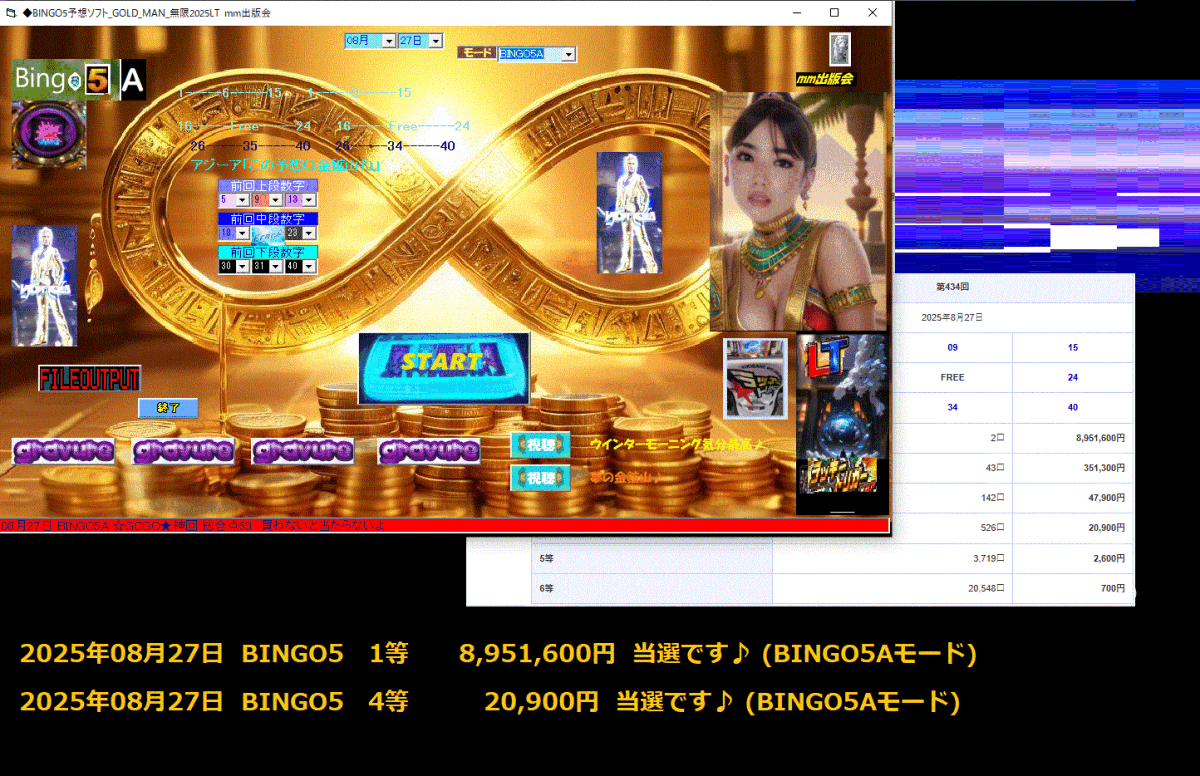 [◆BINGO5予想ソフト_GOLD_MAN_無限2025LT][アジーア「この予想は金鉱山ね」]