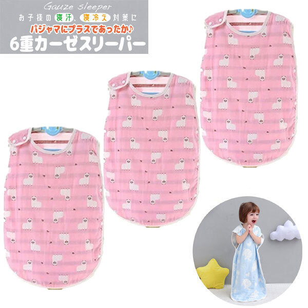 (250819)キッズ 寝冷え防止 6重ガーゼスリーパー アルパカ/ピンク フリー(713837) 3点 | |