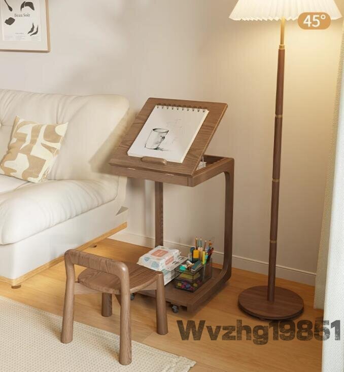 高品質★多機能 無垢材のコーヒーテーブル/移動可能 テーブル/リビング用のフタ付きキャスター付き茶台 >