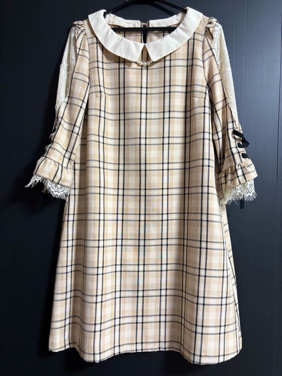 商品名稱 : | axes femme アクシーズファム ワンピース ベージュレース袖 リボン パール飾り付き 取り外し可能 |